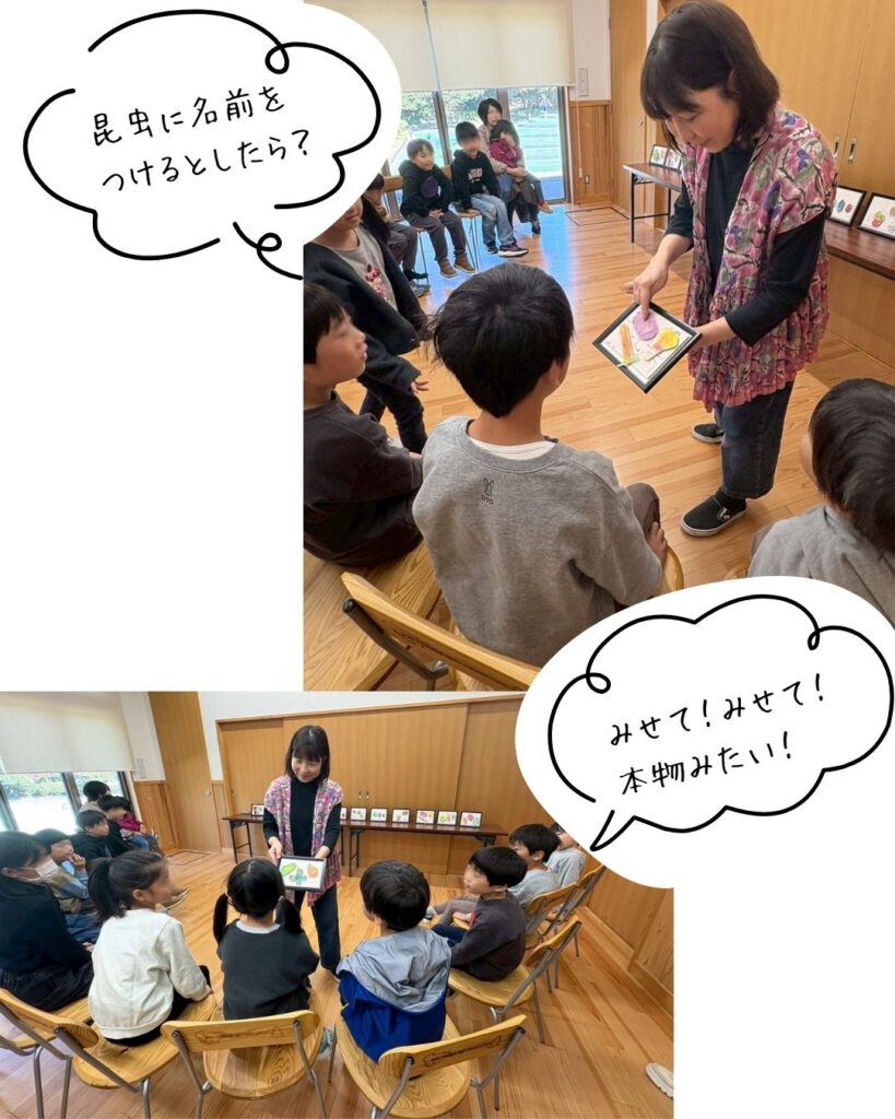 鑑賞会では、子どもたちの作品をさまざまな視点から味わうことができました。昆虫の名前を聞くと、思わず笑ってしまうユニークなものや、驚きのある名前もあり、会場全体が楽しい空気に包まれました。